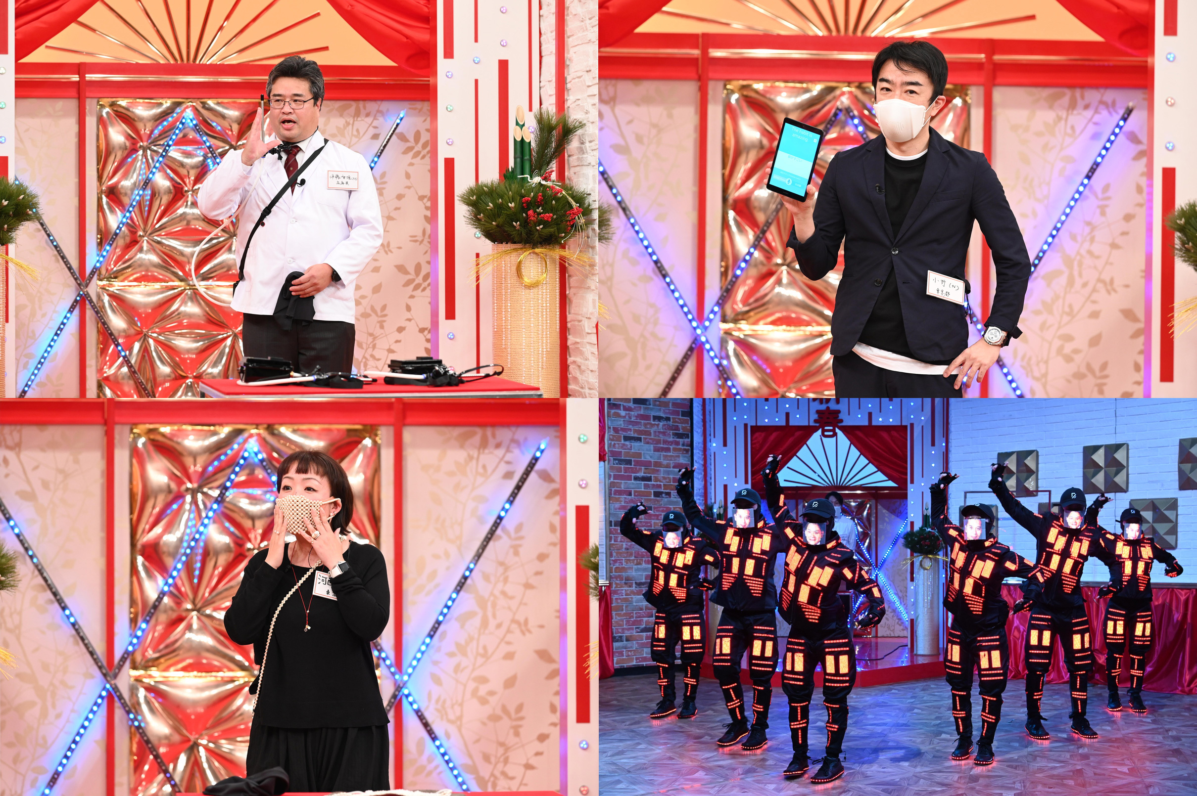 言葉がマスクを通して翻訳されるマスク、気流を出してウイルスを飛ばすマスク、文字や写真・映像を投影することができるLEDマスク、本物の真珠が316粒も使用された真珠マスクなど・・・斬新なマスクに千鳥の反応はいかに!?